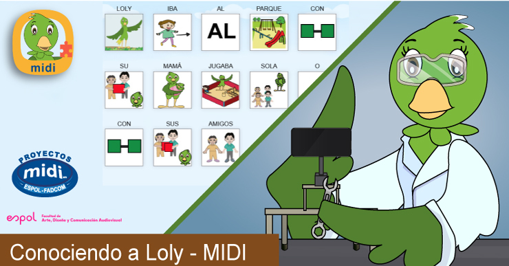“Conociendo a Loly” busca estimular el encuentro entre un niño TEA con un Robot Social sobre el personaje Loly (avatar de una lora harinosa originaria de los bosques tropicales del Ecuatorianas) que se utiliza como personaje guía en los juegos MIDI. Se realiza una conexión e identificación a través de la historia narrada por medio de un cuento interactivo, que sirve como preámbulo para la interacción del niño TEA con el robot social Loly 1.0, a su vez apoya el desarrollo de habilidades cognitivas para niños de 4 – 7 años. El cuento Sirve como material de apoyo para los maestros y padres; para que los niños aprendan y se diviertan de manera simultánea.